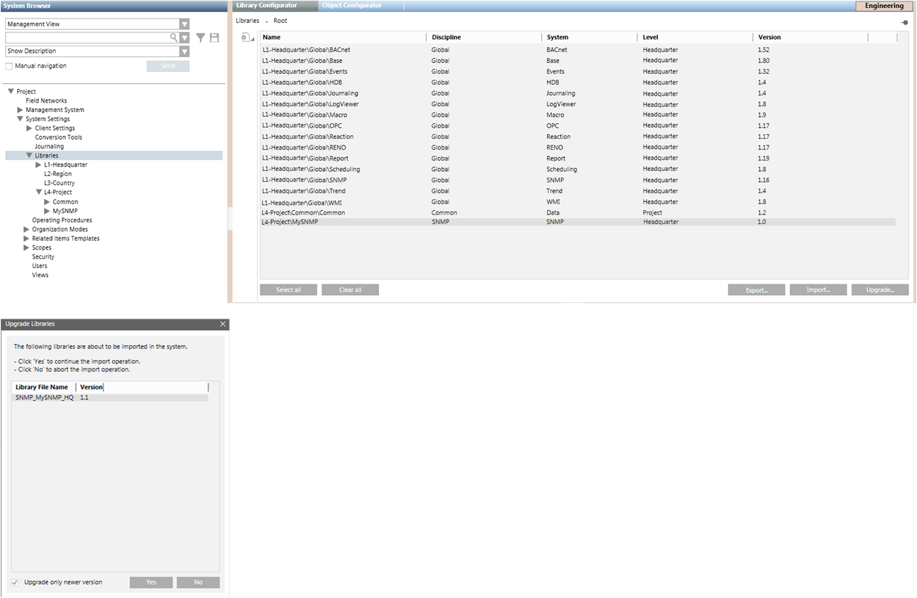 - When the Upgrade Libraries dialog box displays, click Yes to upgrade the SNMP library.