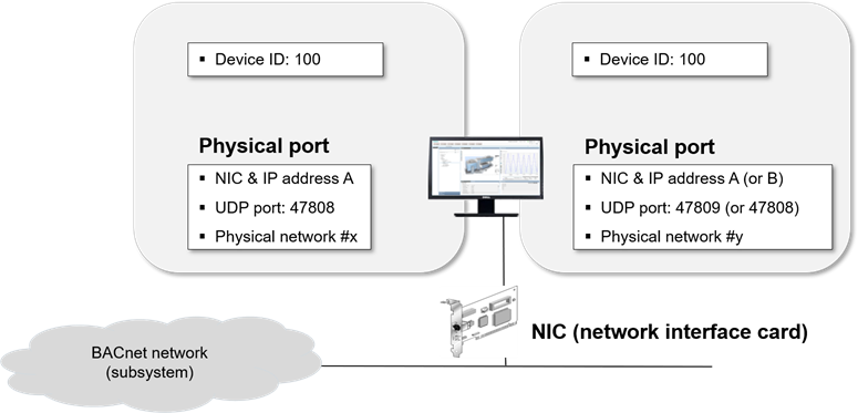 - The IP Address and UDP Port (default is 47808) of each Physical Port must be unique. This means that the Physical Ports must have a different IP address or a different UDP port. For instance, if two drivers are assigned to the same NIC, you can use the value 47809 for the UDP port of the Physical Port of the second driver.