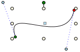 Quadratic Bezier segments can be modified be moving its Start point (green) or its End point (red) by dragging them with the mouse.