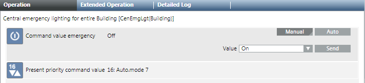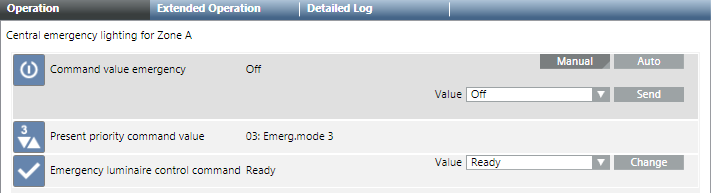 NOTE: The function can also be executed with multiple zones in the Text Viewer. - In the Operation tab, select the Emergency Lighting Control Command property.