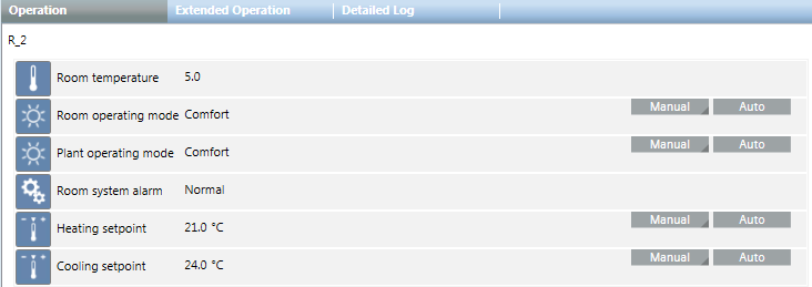 Auto successfulis displayed. - The room operates in automatic mode if not an other manual operating state is active.