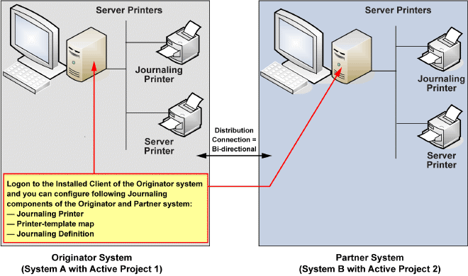 - The server printer configured as a journaling printer and the templates used for printing must be local to the system for which you are configuring the journaling printer-template mapping.