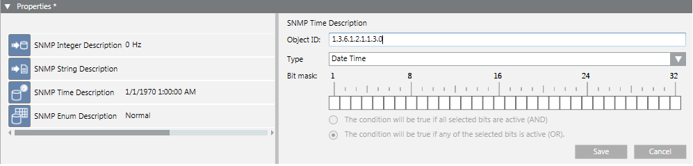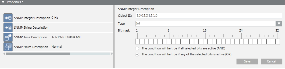 Optional setting that allows verifying some specific bits and activating the event if the defined bitmask matches with the mask received for the SNMP point value.