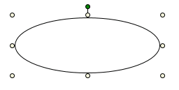 All elements are surrounded by eight white selection and resizing handles: one in each corner and an intermediate handle between the corners. When the selection handles display, the elements are considered active. You can also click and drag each handle until the required size is reached. The ellipse element shows the eight selection and resizing handles. The top center selection handle is attached to the green rotational handle.