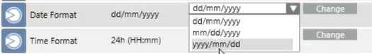 - To change the time formatting, next to the Time Format property select another format from the drop-down list, and click Change.