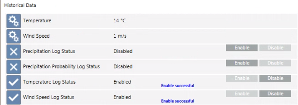 You can enable the weather forecast historical records for historical, statistical, or graphical aims. To this purpose, you must activate the History Data object and then enable the monitoring of relevant properties. For background information, see Meteoblue Weather Integration.