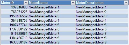 MeterDescription | Description of the managed meter. | You can view the description of the managed meters in your system by configuring additional energy report parameters in Manually Executing Energy Reports. |