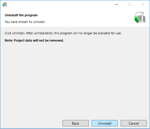 NOTE: A message can display, notifying you that you must wait for another program to complete the process before you can uninstall Desigo CC. - If confirmed, the Uninstall Wizard uninstalls Desigo CC and removes