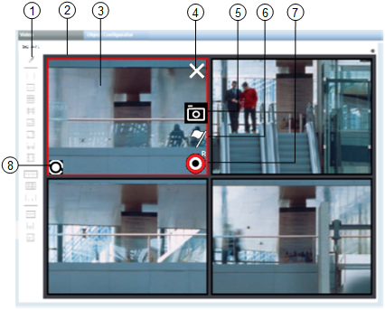 1 | Video Command Toolbar | Displays the command icons that allow you to control the video display and select the layout. |