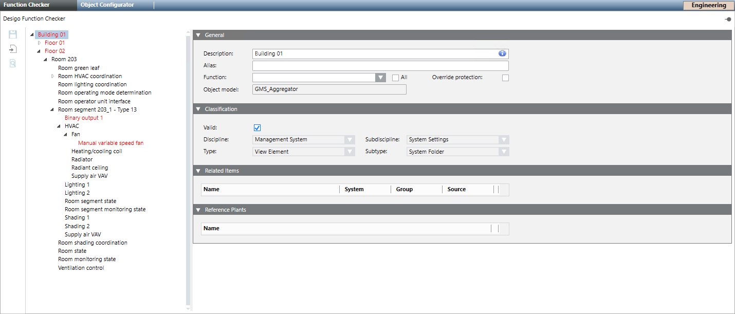 - Select Project > System settings > Conversion tools > Desigo Function Checker.