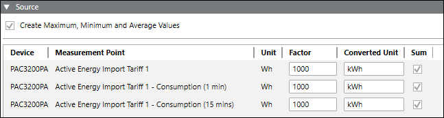 - Converted Unit: Displays the unit of the measurement point after the conversion factor is applied.