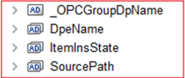 Finally, browsing for the server objects, the following list of OPC items is displayed: