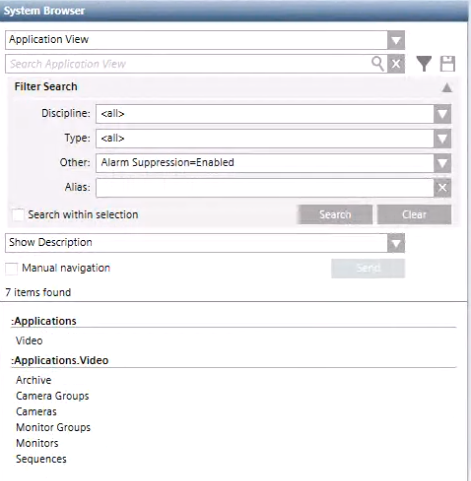- In System Browser, select the system subtree for which you want to enable alarm suppression.