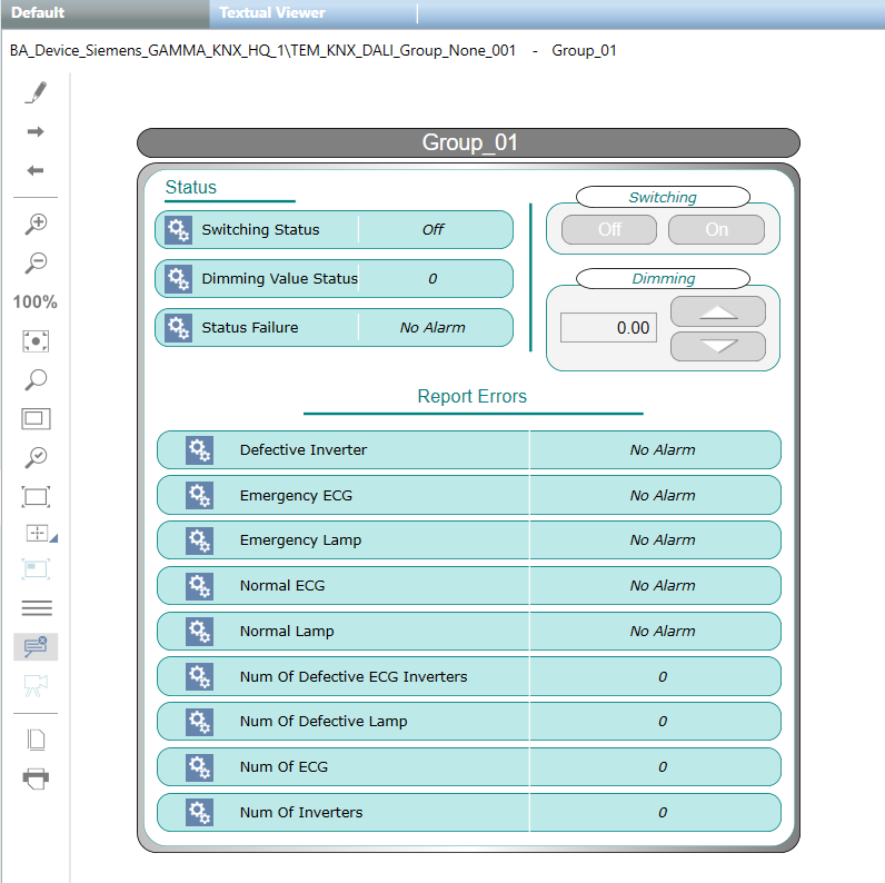 In Engineering mode, this is the graphic template for the DALI lamp group.