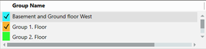 | Displays the floor listed for navigation in Desigo CC that is generated from the BIM data. A corresponding color code is displayed when using room grouping. NOTE: The displayed floor names can differ from the system data. |