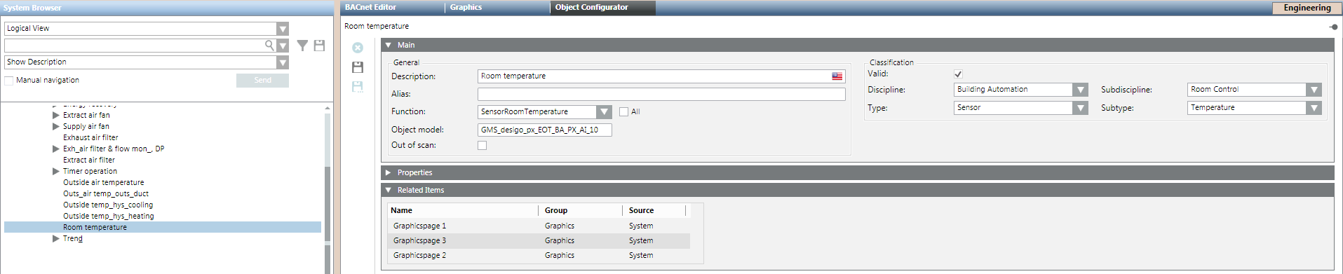 For example, Project > Field Networks > [network] > Hardware > [device] > [data point]. - In the Object Configurator tab, open the Related Items expander.
