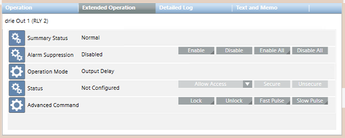 Unsecure | Permanently sets the relay output to the unsecure state (as opposite to the configured secure state). This command overrides the programmed secure/unsecure schedule that may be defined in the SiPass configuration. |