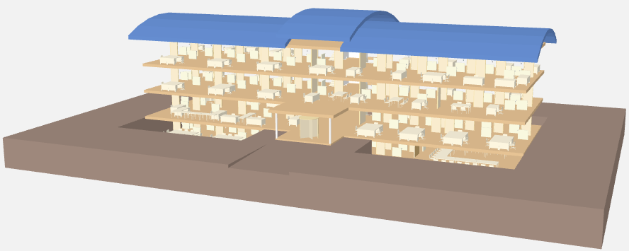 - The building is displayed, for example, without walls.