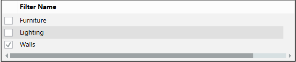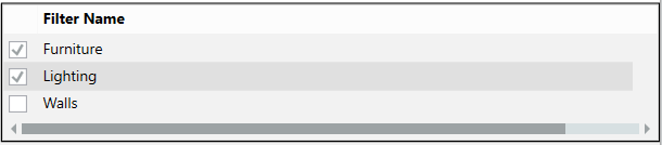 and then the desired floor. - In the Filter Name dialog window, select Lighting and Furniture.
