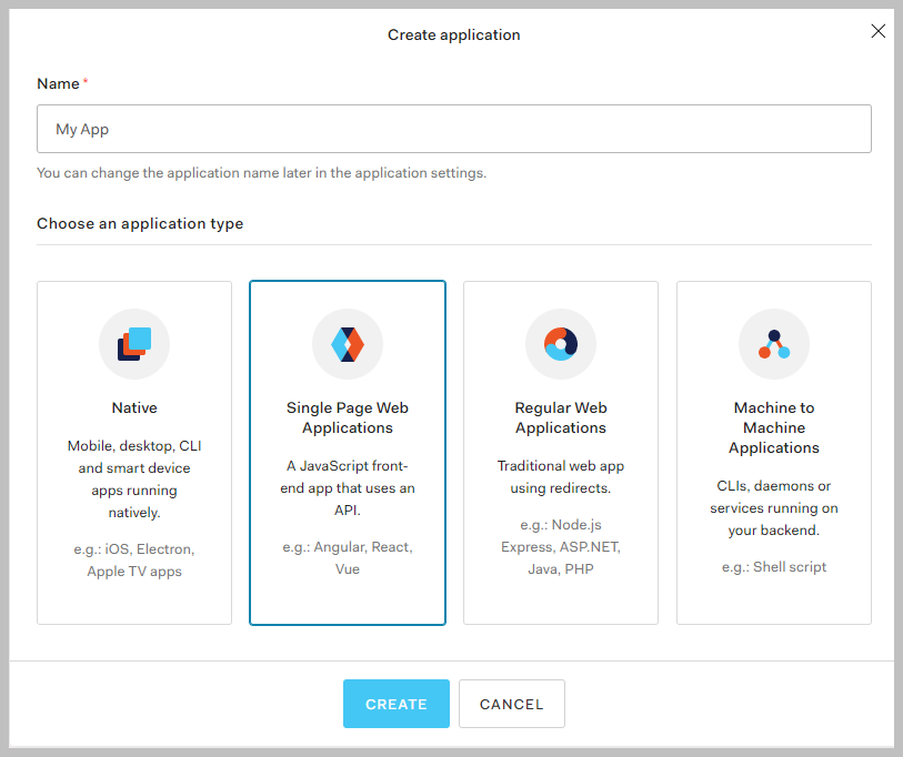 Management Station Authorization Service. - Choose the application type: select Single Page Web Application.