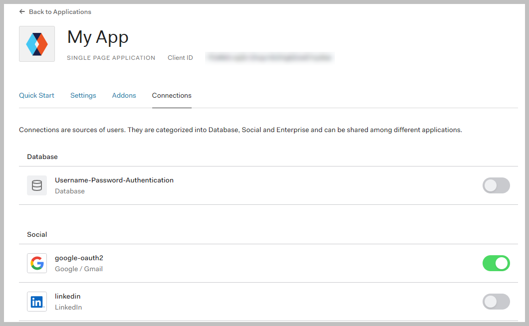 - Social connections. For example, Gmail, LinkedIn, and so on. Follow instructions in Auth0.