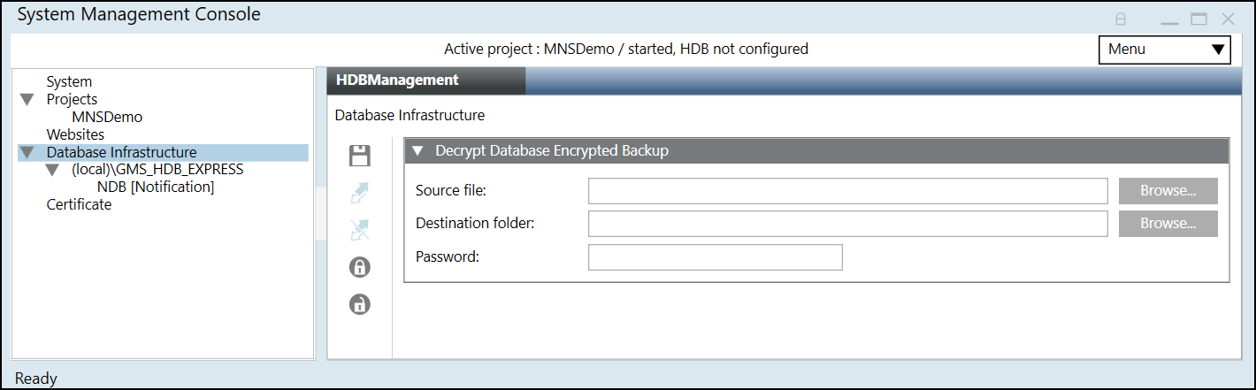 . - In the Decrypt Database Encrypted Backup expander that displays, do the following: