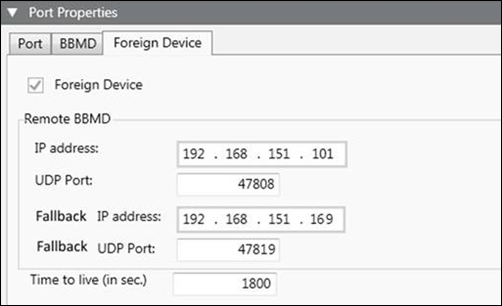 IP Address | Allows you to enter the IP address of the remote BBMD that the foreign device will register with. |