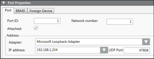 Port Properties > BBMD | |