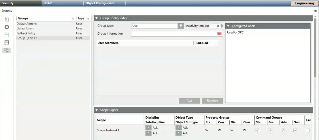 - Command Groups - Repeat the preceding step for any other scopes you want to link to the OPC user group.