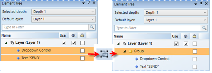 . - Text “SEND” and Dropdown Control are now children of the Group.