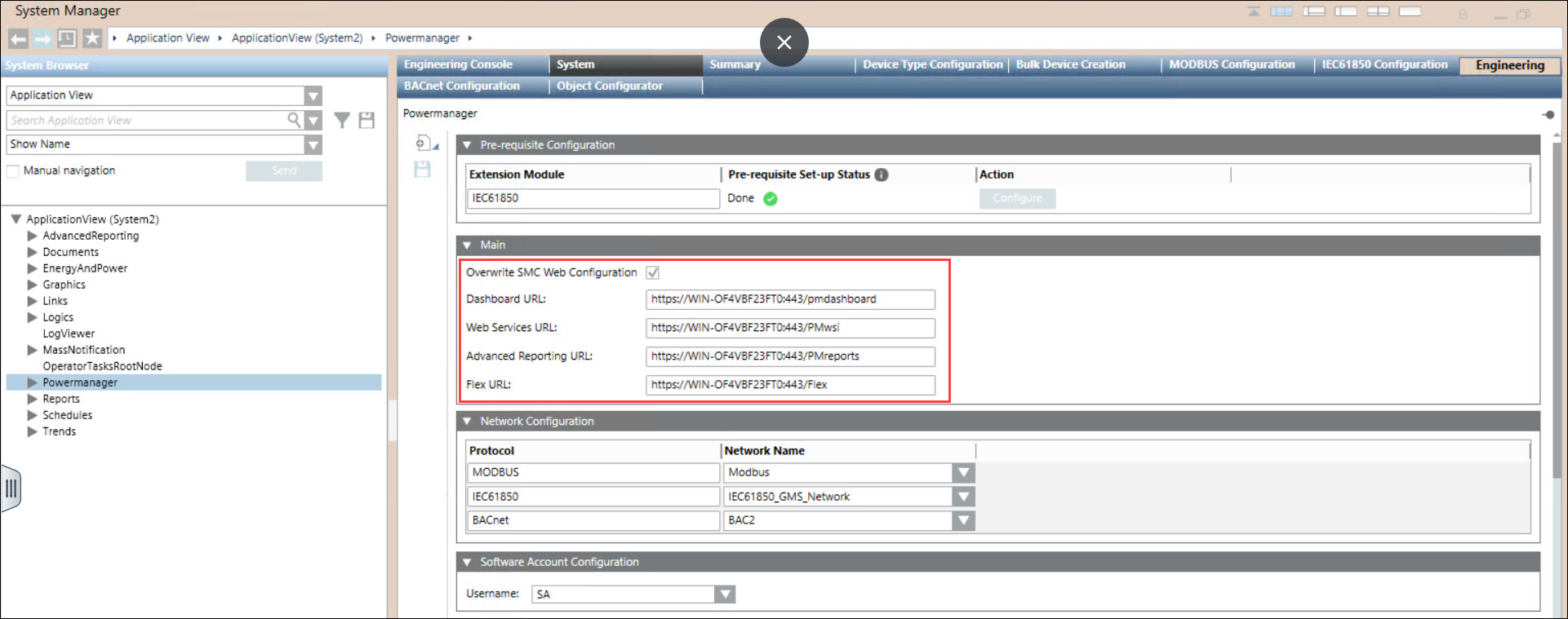 - Select Powermanager node in the system tree and navigate to System tab > Main expander.