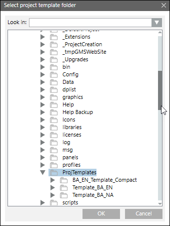 to create a project from a project template. In the Select project template folder dialog box, select the desired project template from the ProjTemplates folder and click OK.