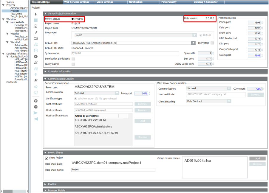 - You have restored the project with a data version earlier than the current Desigo CC setup data version and in the Server Project Information expander of the Project Settings tab, the Project status is