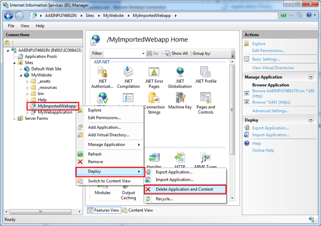 - Right-click the web application you want to delete, and select Deploy > Delete Application and Content.