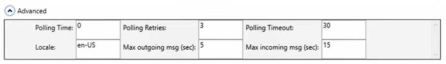 - Polling Timeout (interval of seconds after which each KNX device must reply to the KNX adapter’s request.)