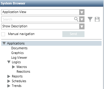 The Application View comes with installation and does not require any changes. If desired, you can customize it to a limited extent, by changing the Description of nodes in the System Browser tree. If desired, you can also associate a graphic with the root node of the view.