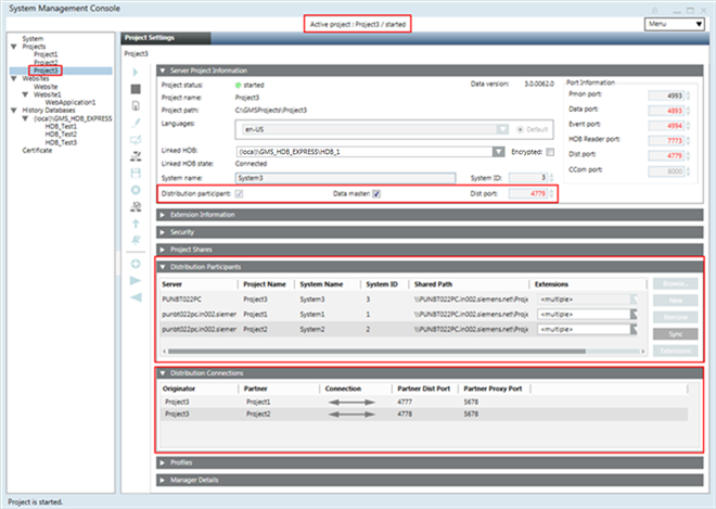 Stopped. For example, if you have three stopped projects, Project1, Project2, and Project3, you cannot set up an outdated project in distribution. You must first upgrade it to the current software version. - The projects in distribution have unique System Name and System ID.