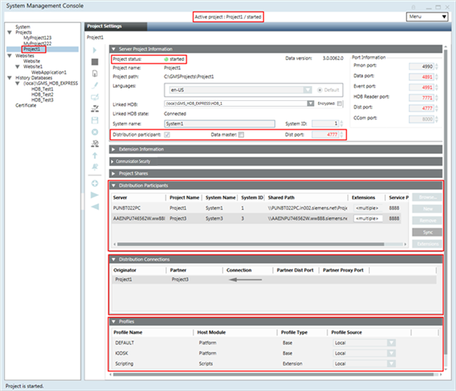 Stopped. For example, you have stopped projects Project1, Project2 and Project3 with unique port numbers. You cannot set up an outdated project in distribution; you must first upgrade it to the current software version. - You must have the names of the extension modules configured project that you want to add as distribution partners.