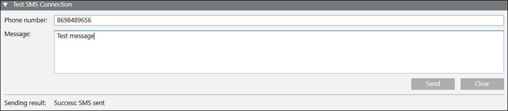 In the Test SMS Connection expander, you can send a test text message.