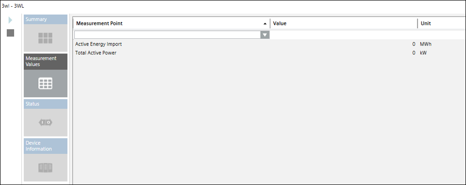 - Measurement Values: When selected, this tile displays the preconfigured measurement points of the selected device with description, current measured value, and defined unit.