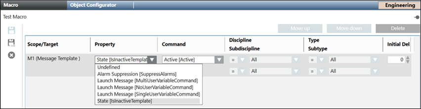 - Drag a Message template, for example, M1, to the Macro tab.