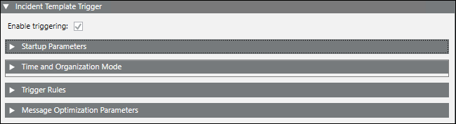 - Startup Parameters: Allows you to control some aspects of the behavior of incident template triggering.