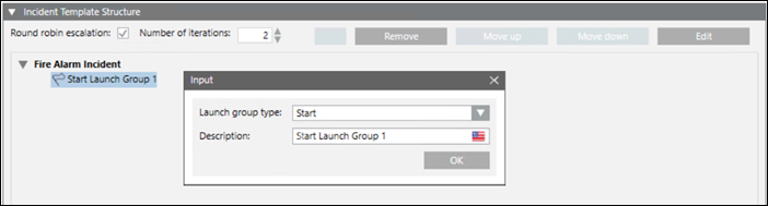 - Click Add to add a launch group to the incident template.
