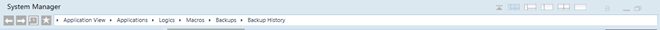 The Navigation bar displays at the top of System Manager and allows you to navigate the system without having to make selections in System Browser (see Browse and Select Objects with the Navigation Bar). It contains a set of icons, and a Breadcrumbs path that shows your current location as a series of links separated by arrows.