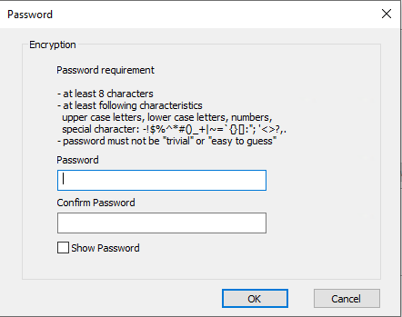 - (Optional) When selecting check box Create password for 7z file, enter a password and click OK.