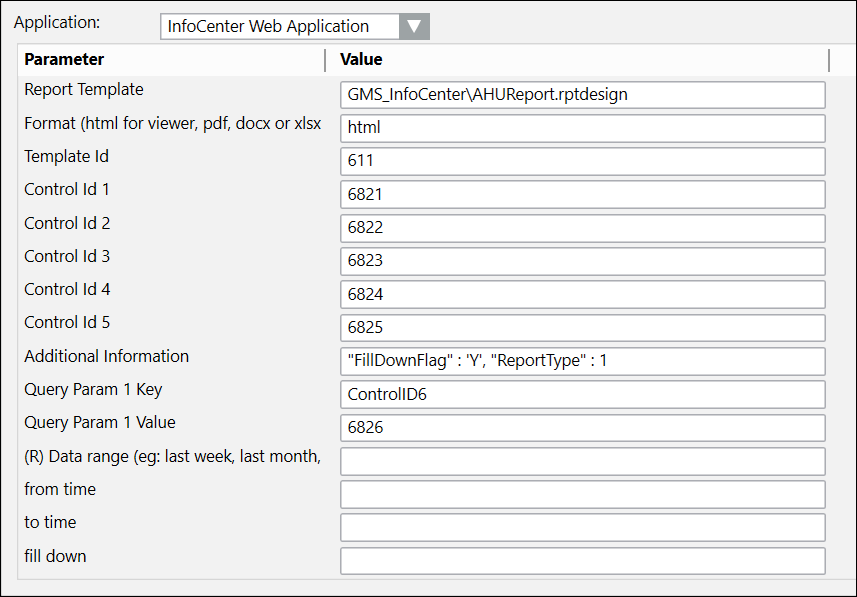 Template and Control IDs will not be the same as the example below. These values vary depending on the user and on the details of the reports in the InfoCenter database.