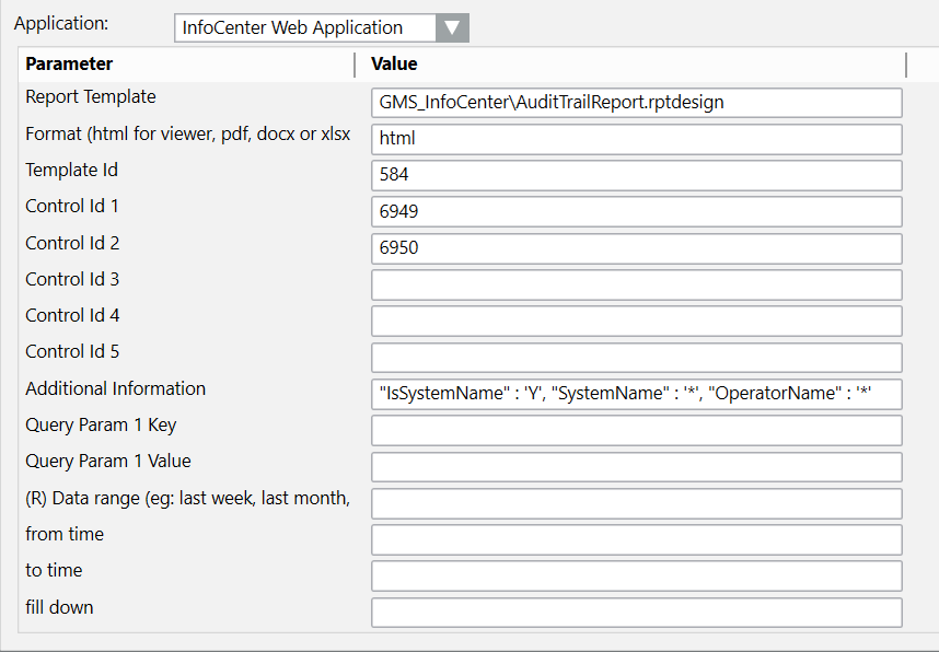 Template and Control IDs will not be the same for all reports. These values vary depending on the user and on the details of the reports in the InfoCenter database.