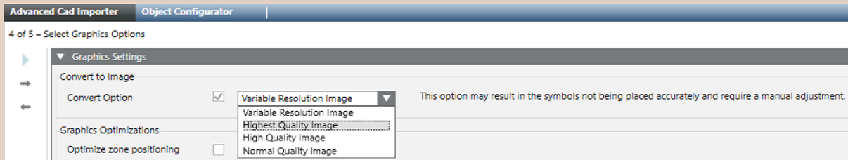 In Convert to Image, select how to import the CAD drawing. Do one of the following: